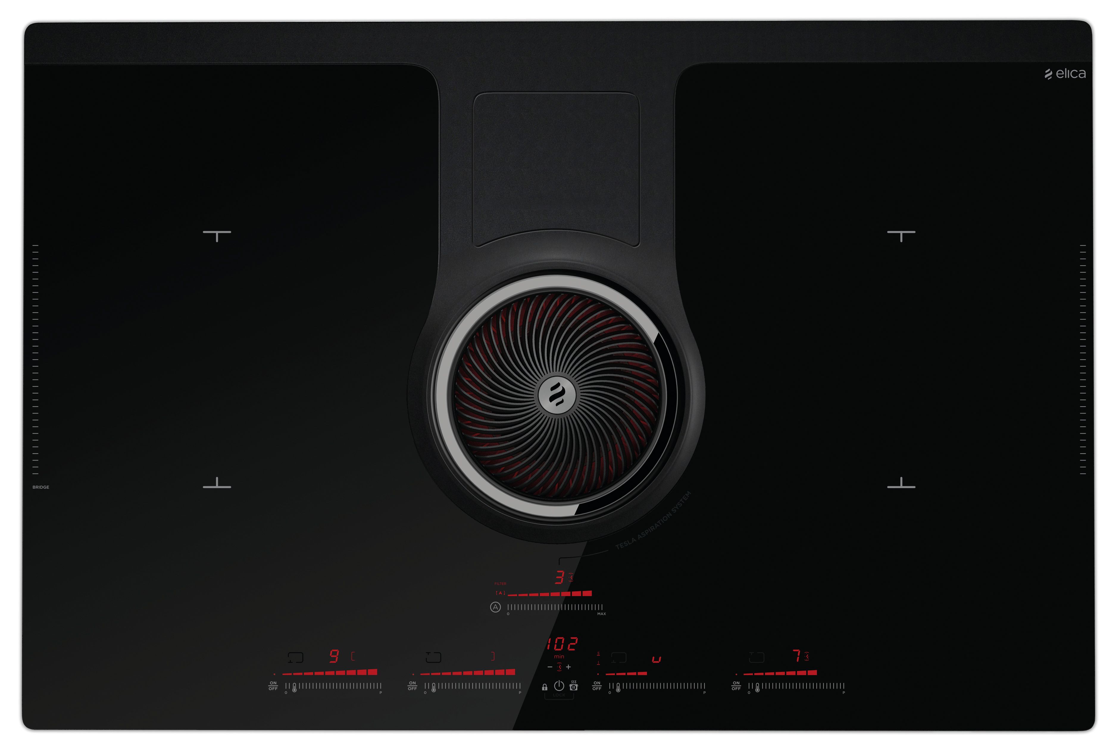 The first aspirating cooktop by Elica. The aspiration system, equipped with a central fan, can reach very high performance levels in terms of air capture, noise level and energy efficiency. Thanks to a direct communication with the cooktop, NikolaTesla receives the information coming from the cooking zones and automatically sets ideal aspiration values. Available in aspiration mode, the cooktop has been designed to fit in any type of living space.Read More